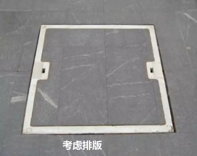 ▲裝面層上的各類井蓋在處理時(shí)應(yīng)提前與鋪裝排版模式進(jìn)行核對,確保不破壞整體鋪裝效果