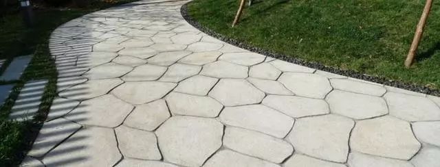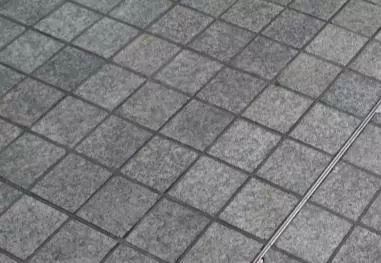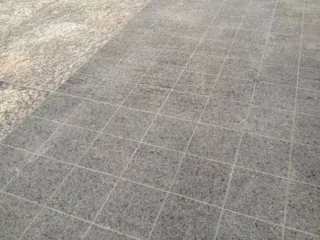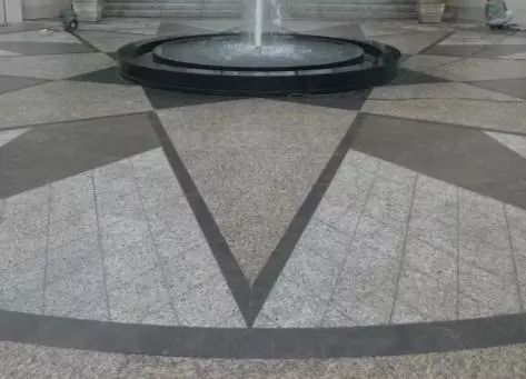 ▲平面鋪裝涉及到曲線段時(shí)為了保證拼縫方向與行走方向一致,鋪裝石材必需使用弧形板過渡。