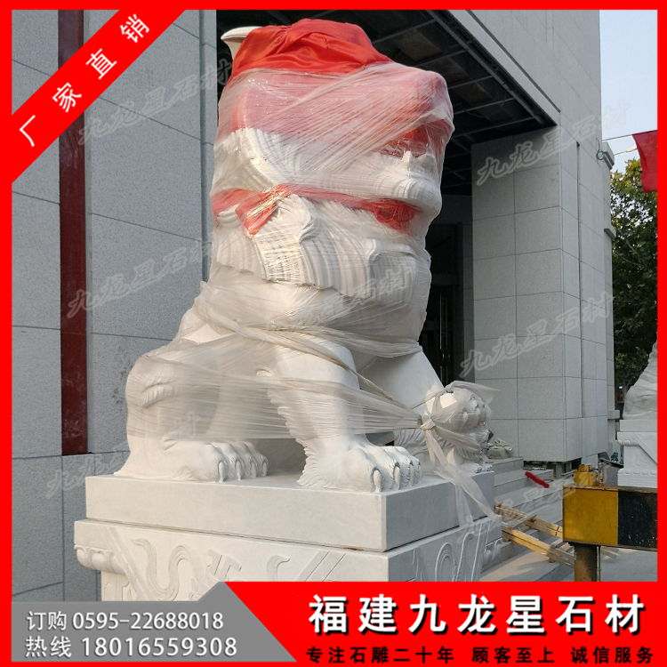 銀行門口石雕港幣獅 漢白玉石獅子