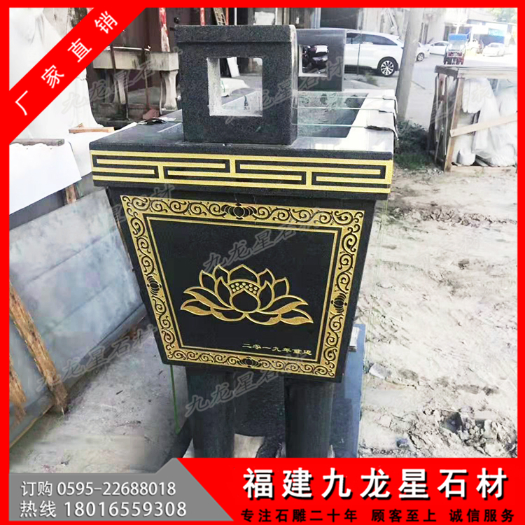 石雕香爐的制作石材通常是優(yōu)質(zhì)顏色偏深的花崗巖石料和青石石料,青石本身顏色呈現(xiàn)青色,較為古樸,青石石雕香爐突顯了整個香爐的莊重氛圍,為佛教圣地增添了幾分威嚴。石雕香爐的外形分為圓口、方形口、長方形口,圓口香爐一般是三足兩耳,方形香爐一般是四足兩耳,長方形香爐一般也是四足兩耳,還有少許兩層石雕香爐。