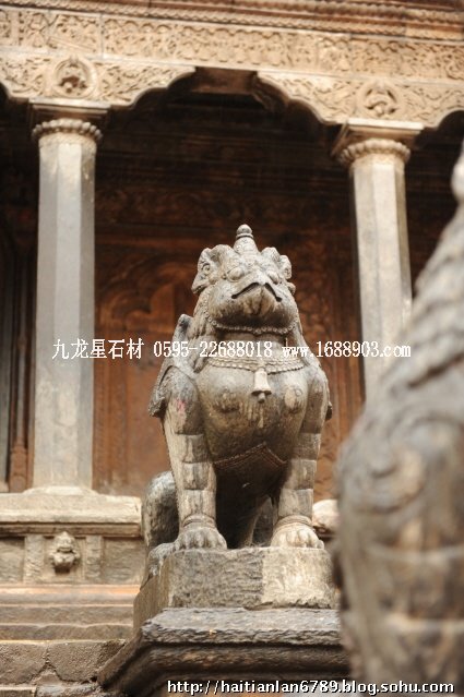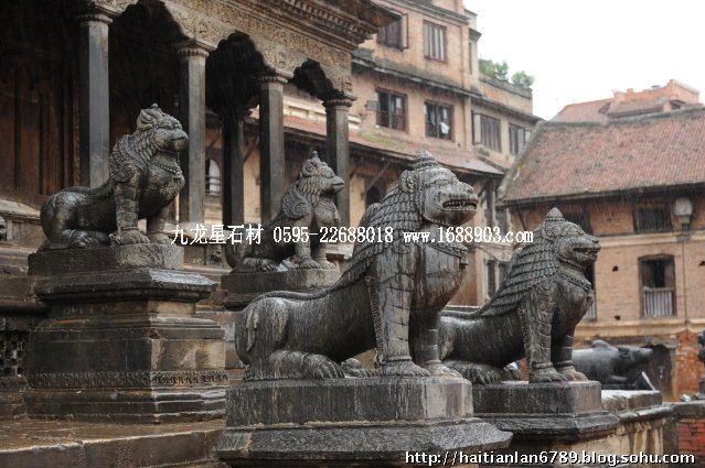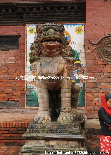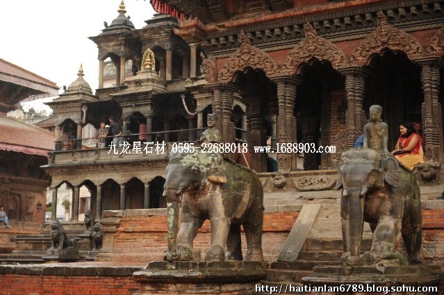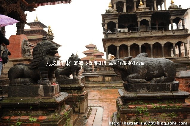 帕特王宮廣場(chǎng)匯集了眾多風(fēng)格古樸的寺廟和石雕。眾石獅們?cè)诟髯缘膷徫簧先找故匦l(wèi)著馬拉國(guó)王的古代宮廷,黑天神廟,加格納拉揚(yáng)神廟,帕特國(guó)王雕像柱和黃金廟。尤其是廟克里希納廟、也稱黑天神廟,處在王宮廣場(chǎng)的核心位置,供黑天神,建于1667年,由于是王室所建,規(guī)模自然比普通神廟大一些,氣勢(shì)上勝一籌。所以從外觀上就可以看到,整個(gè)神廟坐落在高臺(tái)基之上,主殿的圣所正上方,聳立著一座有21個(gè)鎦金塔頂?shù)闹窆S狀塔頂,塔亭的欄桿間,栩栩如生的雕刻著印度古典史詩(shī)《摩坷婆羅多》和《羅摩衍那》的圖像、神像和鳥獸。除塔頂外完全用石頭建成,遠(yuǎn)遠(yuǎn)望去,像是一件精美的石雕工藝品。這是尼泊爾建筑藝術(shù)的奇跡,而這樣一座偉大的建筑,竟完全不用圍墻,也沒(méi)有手持武器的衛(wèi)兵。那么,誰(shuí)來(lái)護(hù)佑她的安全呢?自然是石獅子了。門前一個(gè)獅子衛(wèi)隊(duì),那叫一個(gè)威武啊,就算是牛鬼蛇神壞人也沒(méi)有敢起歹心的。