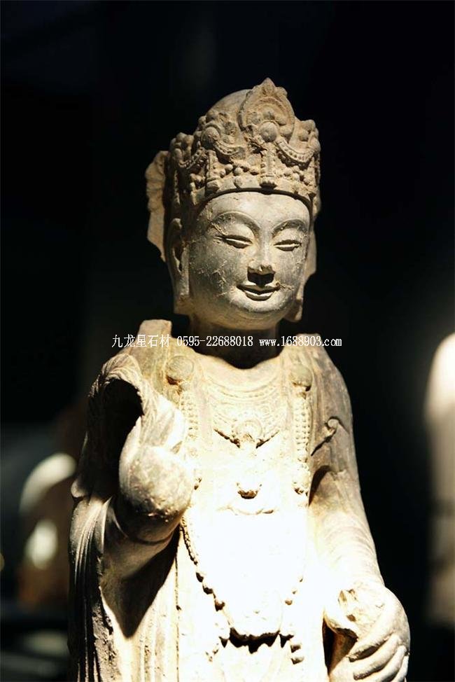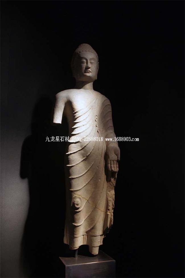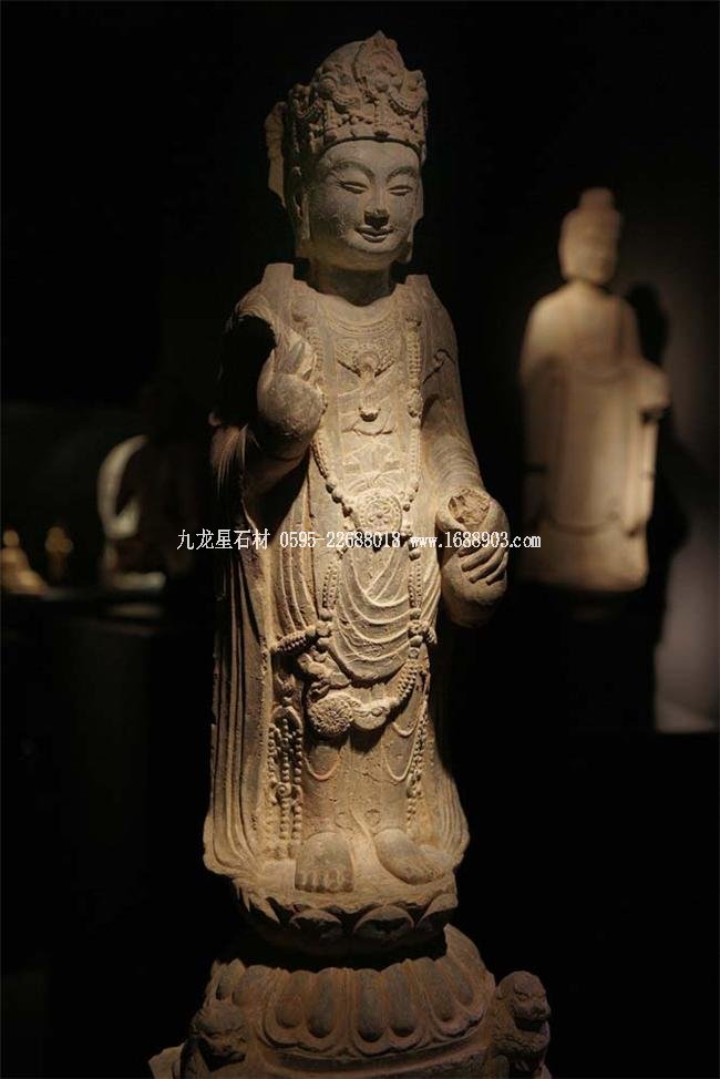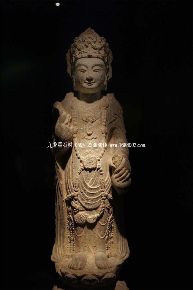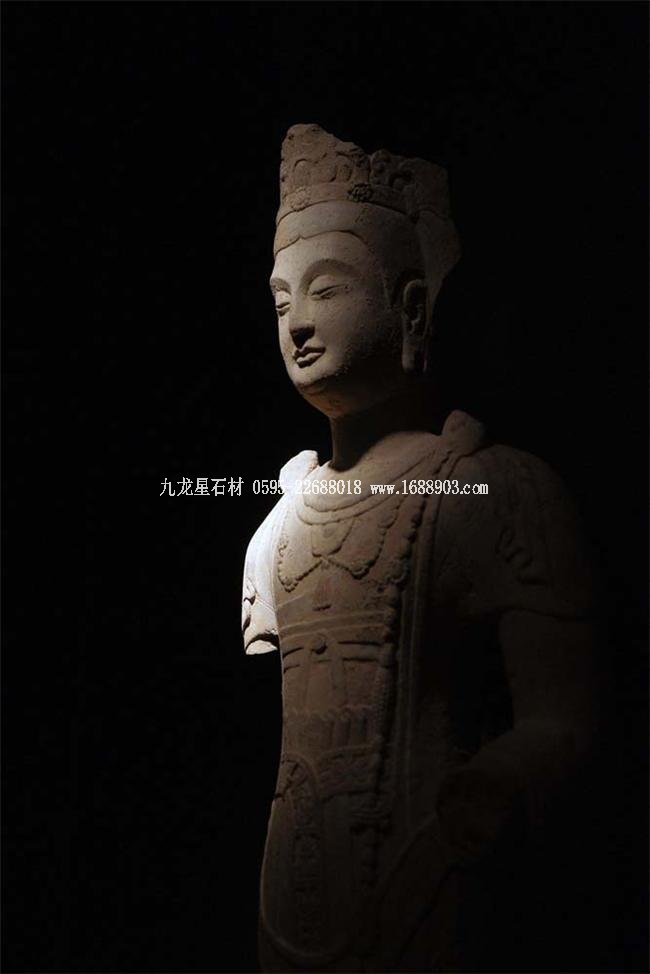 北魏、北齊時(shí)期,佛像雕刻藝術(shù)趨于巔峰極致之境界。北魏佛像造型挺拔秀美,細(xì)腰寬背,衣紋是富于裝飾的淺刻。北齊造像多為面型豐腴,衣紋簡(jiǎn)潔,服薄貼體,整體平潤(rùn)光潔,與面部寧?kù)o安祥的表情和諧一致。這類(lèi)疏簡(jiǎn)淳潤(rùn)的佛像造像,無(wú)論從光潔的肌體或平滑衣物里,似乎都能感覺(jué)到內(nèi)部筋肉的輕微變化。潤(rùn)澤的體面與舒緩下垂的線(xiàn)條,使形象在疏簡(jiǎn)平淡中流露出內(nèi)在的氣質(zhì)。