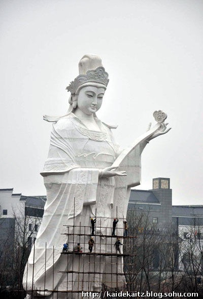 據(jù)說(shuō),這神像高37米,北京漢白玉雕刻。神像面容慈祥而和藹。