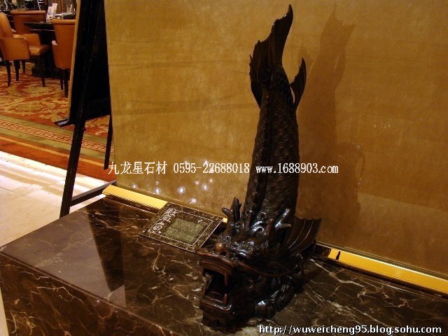 ③臺中日華金典酒店里的鰲魚木雕,從中也看出了酒店老板期望升入酒店界一流的想法.