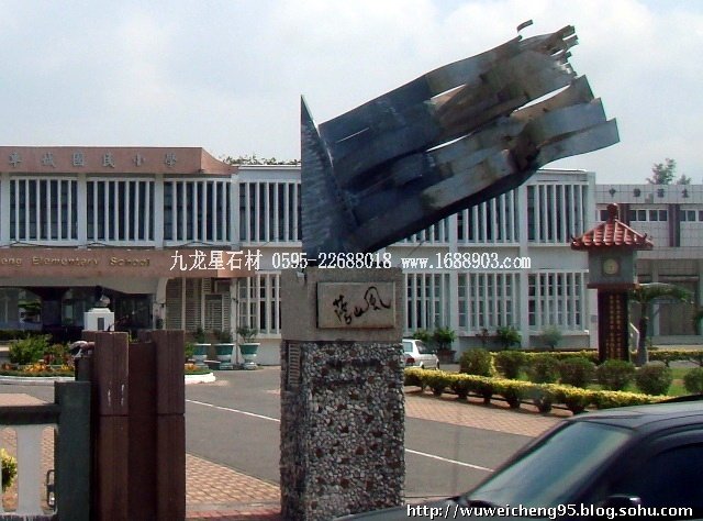 2、屏東車城國民小學門口的落山風雕塑;