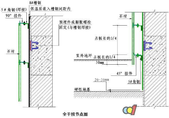 干掛石材節(jié)點(diǎn)施工工藝說(shuō)明: