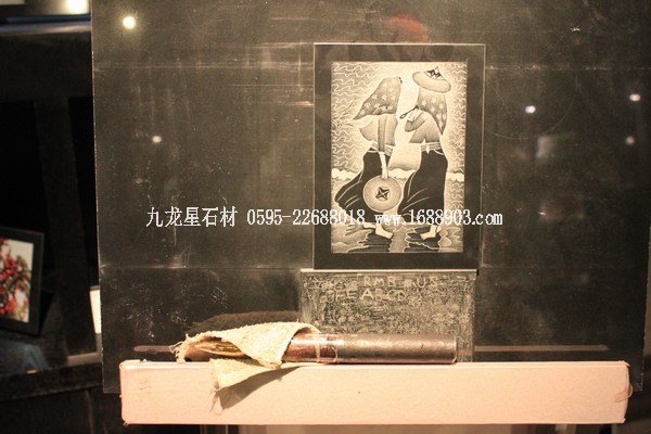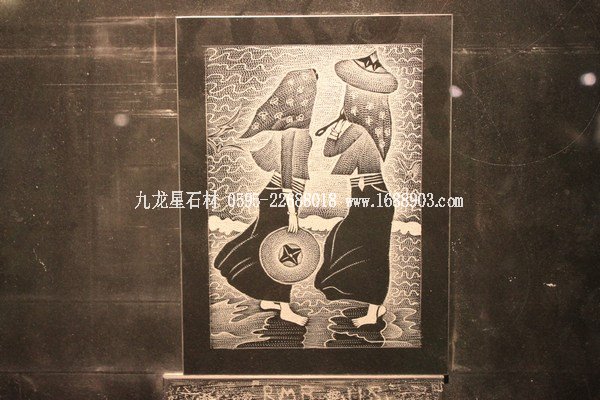 最后重點介紹的是手雕的石板像,石板面的顏色是黑色的,上面的圖案全由雕刻的深淺不同表現(xiàn)出來: