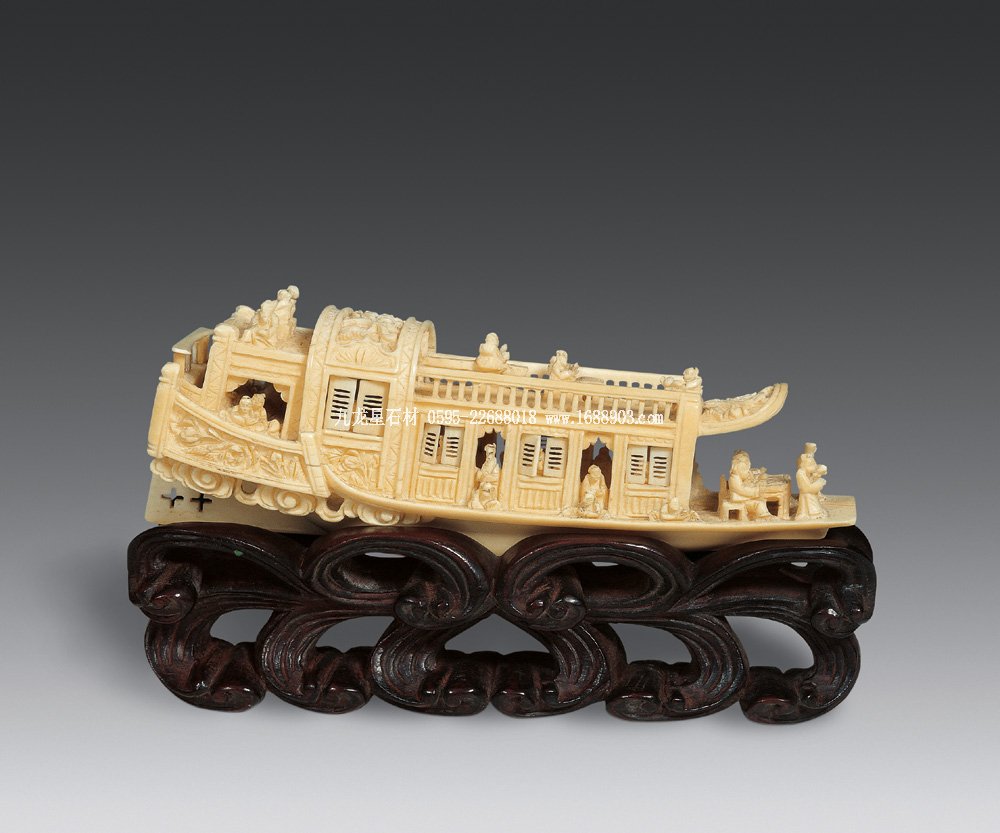 清末 透雕象牙船擺件