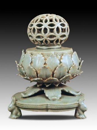 青瓷透雕七寶香爐 12世紀 通高15.3厘米 首爾國立中央博物館藏]
