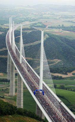 如果擔(dān)心高度過(guò)高,你可能不會(huì)選擇穿越法國(guó)南部的米約大橋,這座大橋跨越塔恩河谷至米約地區(qū),是當(dāng)今世界上最高的車(chē)載交通大橋,其最高點(diǎn)距離地面1125英尺。