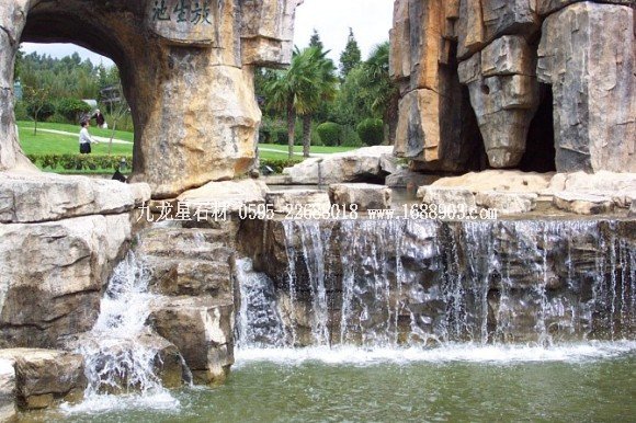 (A) 水量 人工瀑布的水量較大,通常采用循環(huán)水。瀑布水量越大,越接近大自然,氣勢雄偉,能量的消耗也大。因此要研究水量的問題。 瀑布在跌落的過程中,水體和空氣摩擦碰撞,逐漸成水滴分散,瀑布破裂匹練不復(fù)存。因此需一定的厚度,才能保持水型,達到李白詩掛流三百丈,噴壑數(shù)十里。欻如飛電來,隱若白虹起的意境。 國外資料顯示,隨著瀑布跌落高度增加,水流厚度、水量也相應(yīng)增加。瀑布有時水量會非常大。日本大阪花博會曾在中心湖設(shè)計一座水中通道,即在瞬間把湖中水下兩堵墻之間的水全部抽空,顯現(xiàn)一條通道來。湖水隨即越墻而下,氣勢如千軍萬馬。這些瀑布水隨即被抽走,周而復(fù)始。為了增加水量,往往把噴泉的造水口設(shè)在噴泉下水池,而噴涌出來的水流入上水池,二池之間形成瀑布。