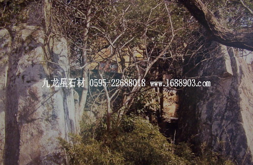 西天門,位于心字石景點(diǎn)上方(見圖),該處有塊蛤蟆石與山邊的一塊巨石相聯(lián),兩石相峙似門,上又覆巨石,題鐫“西天法界”四字,門右巨石上題刻“證菩提道”、“寰海鏡清”。西天門外有一塊似蛇首的大石塊,形象逼真,惟妙惟肖,流傳著發(fā)人警醒的觀音斗惡蟒的故事。進(jìn)門右上峰頂,一石壁立,酷似一老僧佝腰負(fù)囊面西而行,稱達(dá)摩蜂。清吳祺詩云:“蕭梁臺(tái)殿草茸茸,面壁親傳少室宗。只履西歸無覓處,誰留明月照孤峰?!北旧缴湓娫?“嵩山人似壁,補(bǔ)洛壁如人,獨(dú)立孤峰上,誰逢蔥嶺身。”現(xiàn)因林木茂盛,達(dá)摩已掩在其中了。據(jù)傳,西天門是凡間佛教信徒去西天說法臺(tái)聽觀音說法的必進(jìn)之門。