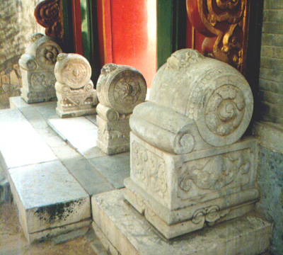 抱鼓石是"非貴即富"的門第符號 中國古代擊鼓升堂、擊鼓定更等等已經(jīng)形成了官制的行為特征,鼓成了官衙的符號。在明清時期衙門口有鼓是為了"擊鼓升堂"用的,這里擊鼓的目的就是傳聲。古代大戶人家院落深深,光靠拍打鋪首或門鈸可能不足以讓內(nèi)院人聽見,故擊鼓傳聲也是情理之中的。于是我們可以設想官宦人家在宅門門枕石上刻了一個象征通報來客的鼓形,是有心理鋪墊的。因為其樣貌很漂亮威武,模仿之風一開剩下來就是定制了。于是安放抱鼓石便成了權利地位的門戶象征。同樣,因為鼓是法事專用的樂器,把抱鼓石看作能夠驅(qū)邪避災的法力象征,在佛寺祠堂等廟宇前面擺放抱鼓石也是順理成章的。另外,將門枕石上方做成圓形可與下部方形基座構成"天圓地方"的造型關系。至于抱鼓石上的獅子造型,是與衙門前的石獅子息息相關的,我們今天在故宮中仍能看到以整尊石獅子打制的門枕石 抱鼓石是中國宅門構件的功能產(chǎn)物,它是依托功能施以裝飾的石制構件,起著圍護大門壯主人威勢以撐門面的作用。中國的外墻宅門一般為兩扇,而內(nèi)室門戶為一扇,因為漢字門是由兩戶所組成的,兩扇門決定了抱鼓石必定是對稱的結構。抱鼓石是禮制建筑等級的符號象征,也是"非貴即富"的門第符號,抱鼓石絕不脫離它主人背后的政治、經(jīng)濟基礎而獨立存在。正如吳良鏞所言它"已經(jīng)不僅是一種樣式,而是植根于生活的深層結構,是一種居住文化的體現(xiàn)。"