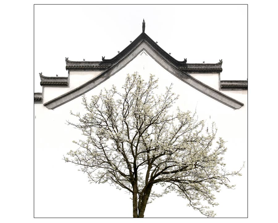 蔡龍---徽居。作品拍攝于皖南的一個(gè)山村,站在山坡上放眼望去,那一株株梨樹漫山遍野,白茫茫的一片,像起伏的波浪。在徽派建筑群的印襯下,展現(xiàn)眼前是一幅美麗的畫卷。