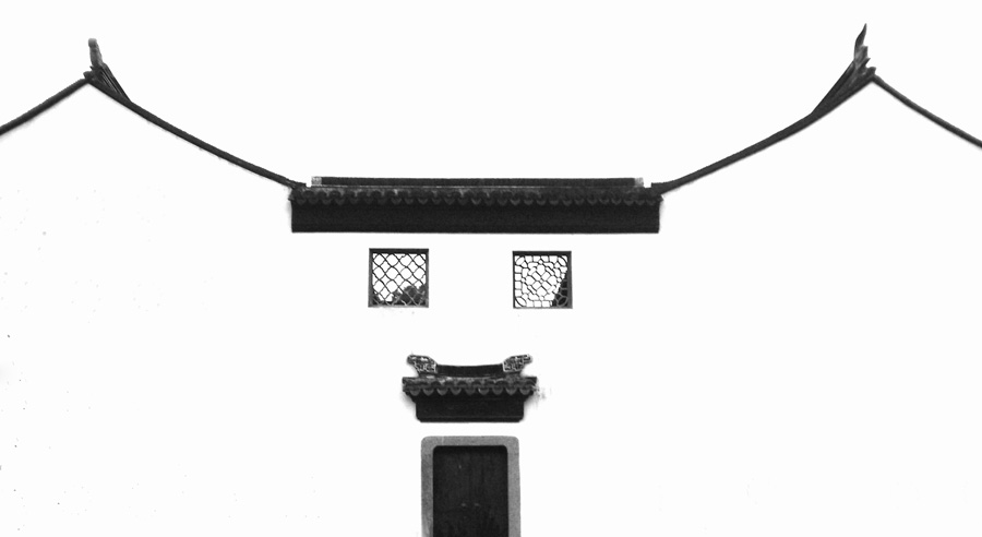 姜明燈---眉開眼笑。作者將生活中看似簡(jiǎn)單的古民居線條和純凈自然的黑白色,勾勒出一張栩栩如生的笑臉,生動(dòng)而富有張力。