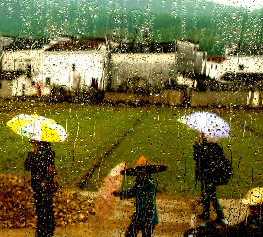 創(chuàng)意二等獎(jiǎng):謝偉洪---煙雨江南。早春二月的雨水打在車窗的玻璃上,給人一種蒙朧的感覺,作者將古建筑與游客構(gòu)成一幅煙雨江南的韻味。