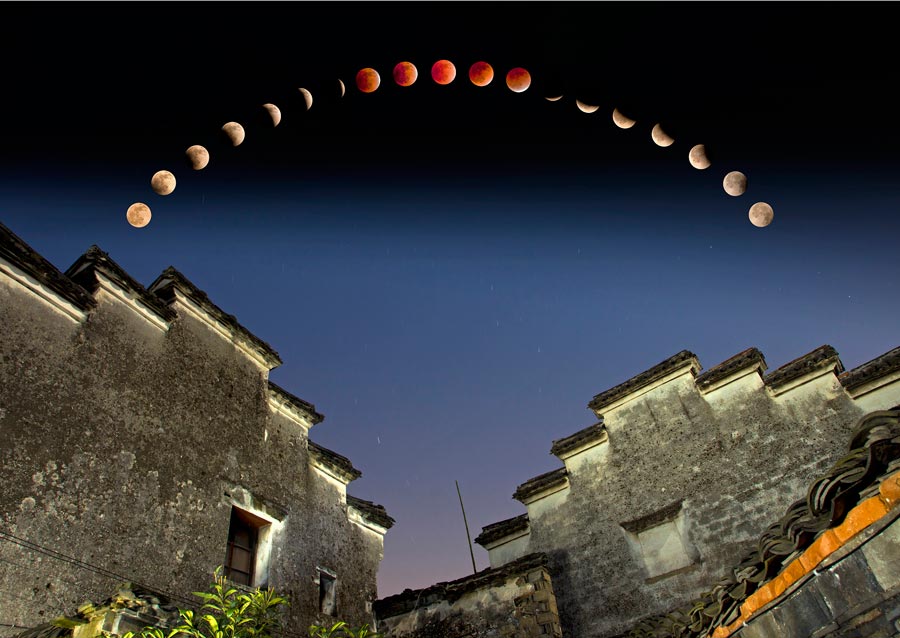 蔣亞軍---歲月。 作品拍攝于2011年12月10日慈溪市鳴鶴古鎮(zhèn),當(dāng)天是難得的觀看日全食機(jī)會(huì),白天作者與攝友們商定晚上拍攝日全食,把全過(guò)程都記錄了下來(lái)。