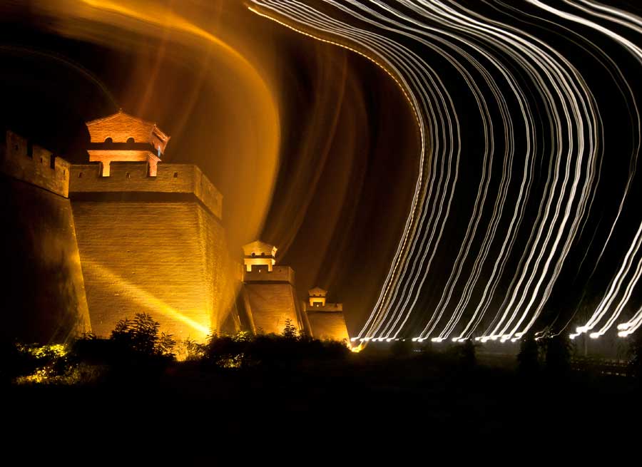 張為民---光繪平遙。作品拍攝于2011年9月19日夜,作者漫步平遙街頭,將古城的燈光描繪出光影,以再現(xiàn)古城的雄姿和燈紅酒綠的歷史面貌。