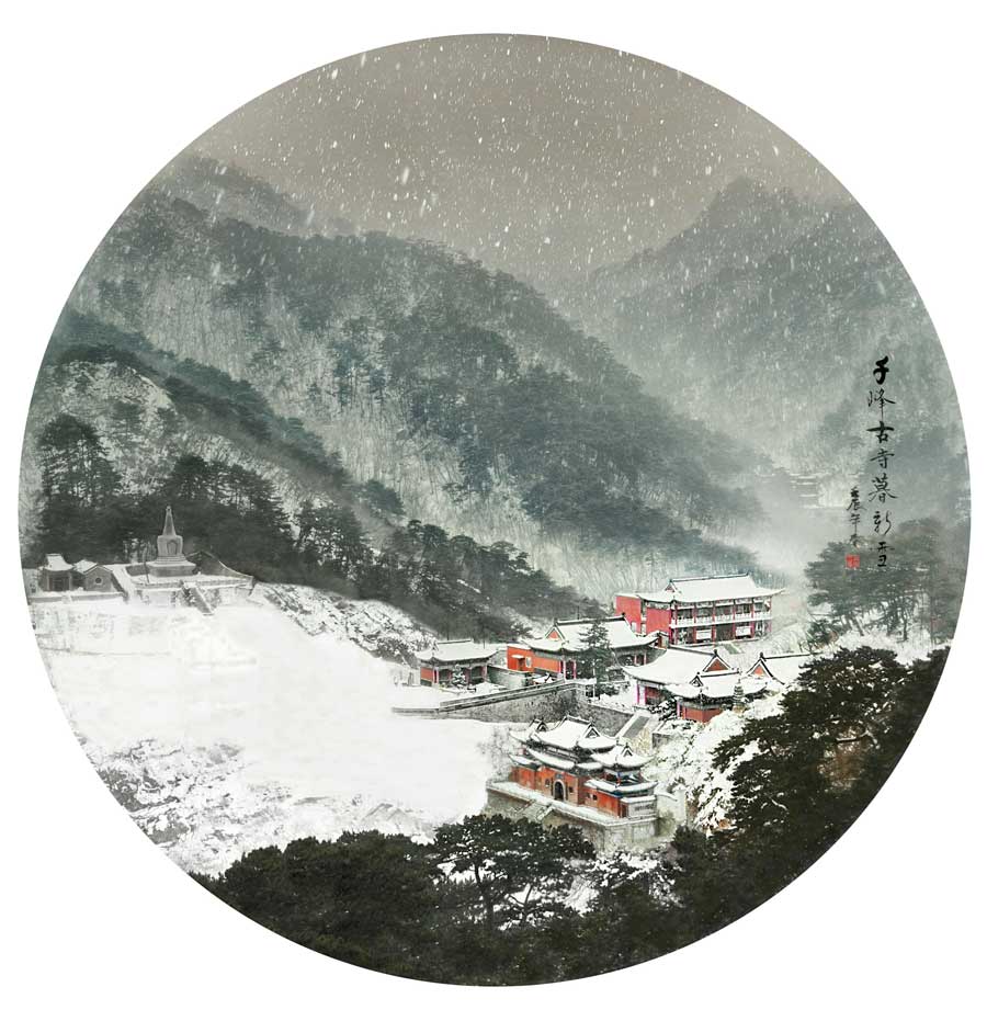 宋暉---千峰古寺暮飛雪。作品拍攝于遼寧省千山,作者透過(guò)鏡頭看到雪后的千山,畫面簡(jiǎn)潔、線條清晰,猶如一幅天然的山水畫。