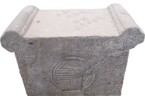 西安關(guān)中民俗藝術(shù)博物院收藏有一批明清及民國時期的石供桌,有分體式,也有整體式。其構(gòu)造可分為桌面、桌腿和裙面三部分。一般桌面兩端上翹,側(cè)面和正側(cè)面即裙面雕刻有紋飾。尤其是裙面紋飾頗為精彩,也是其精華所在,反映了當時的石雕藝術(shù)。