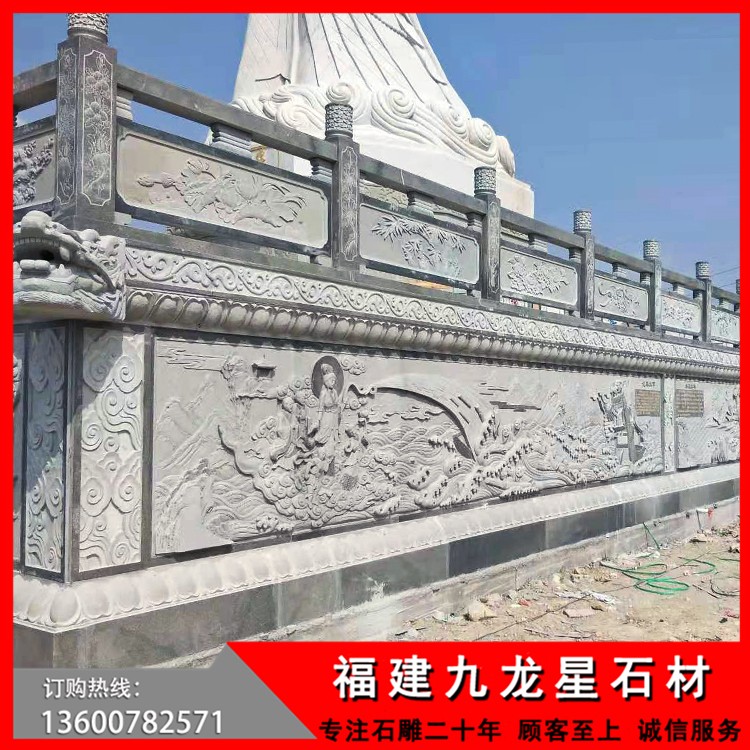 規(guī)格尺寸:6.3米千順將軍,88米梅蘭菊竹欄桿,120平媽祖神話故事浮雕