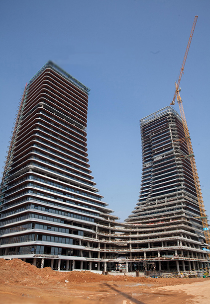 正在建設(shè)中的東南航運(yùn)總部大廈部分樓群來了個倒穿褲衩,又成為建筑史上一大亮點(diǎn)。