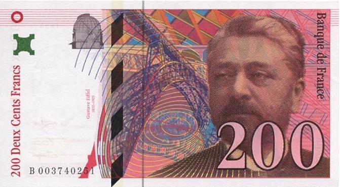 埃菲爾以其著名的巴黎鐵塔享譽世界,他是杰出的建筑師和工程師,曾在1800年代晚期和1900年代早期設計過諸多橋梁和建筑。他的肖像于1996-2002年間出現(xiàn)在200法郎紙幣上。