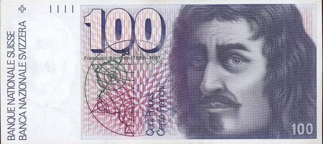 與貝爾尼尼匹敵,博羅米尼為羅馬設計了一些最引人注目的教堂,包括四噴泉圣卡羅教堂( San Carlo alle Quattro Fontane )和圣依華堂(Sant'Ivo alla Sapienza)。他的肖像于1976-2000年間出現(xiàn)在瑞士100法郎紙幣上,此間存在一些爭議,因為他的故鄉(xiāng)提契諾,如今已屬于瑞士,但在博羅米尼生前是意大利國土的一部分。