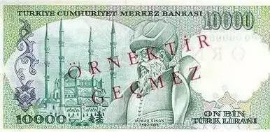 希南是16世紀奧斯曼帝國蘇丹蘇萊曼大帝塞利姆二世、穆拉德三世統(tǒng)治時期的總建筑師,曾設計了土耳其諸多著名的清真寺和浴場。希南的肖像出現(xiàn)在土耳其10,000里拉紙幣的背面,于1982-1995年間流通。