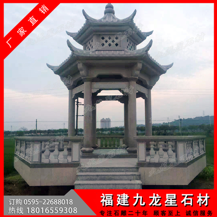 雙層六角涼亭的類別有四角式?jīng)鐾?、六角式?jīng)鐾?、八角式?jīng)鐾ぜ皥A形涼亭,在雕刻形式上屬于浮雕和圓雕藝術(shù),雕工技法都很講究。大多中式石雕涼亭樣式豐富多樣,有單層涼亭、雙層涼亭和多層涼亭,還有一些在涼亭石柱雕刻吉祥對聯(lián),展現(xiàn)中國傳統(tǒng)的歷史文化。