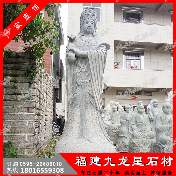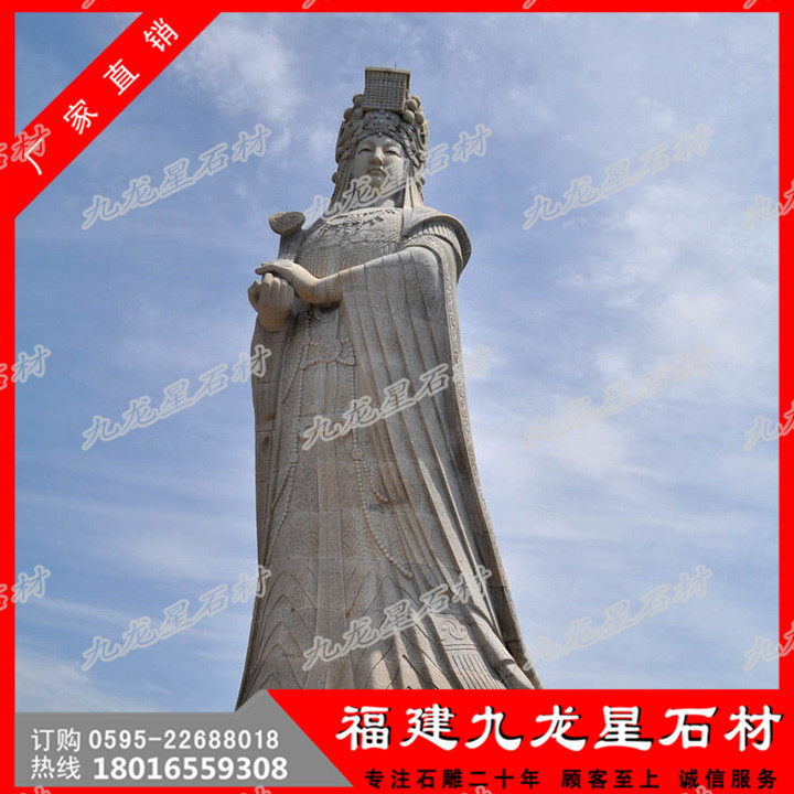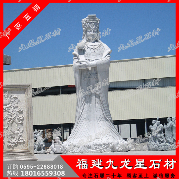 大型石雕媽祖中國民間在海上航行要先在船舶啟航前要先祭媽祖,祈求保佑順風和安全,在船舶上立媽祖神位供奉。這就是“有海水處有華人,華人到處有媽祖”的真實寫照。而影響所及,媽祖由航海關系而演變?yōu)椤昂I瘛?、“護航女神”等,因此形成了海洋文化史中最重要的中國民間信仰崇拜神之一。