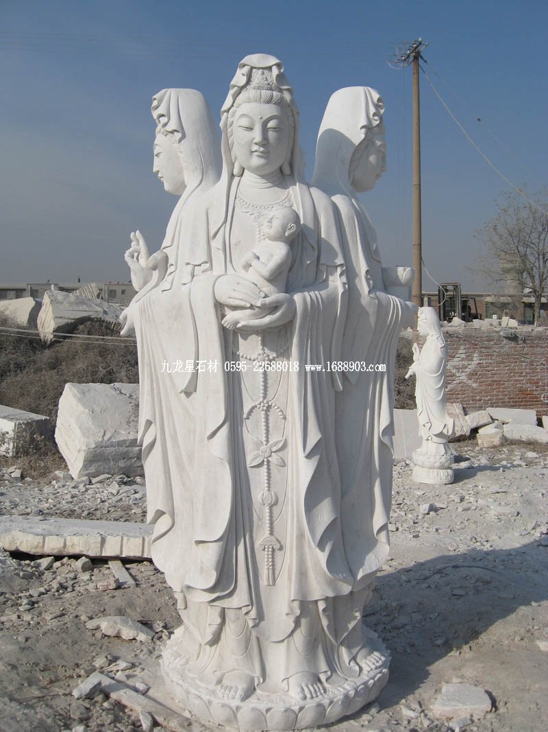 石雕四面觀音含蓮花踏板高2.8米,材質為四川漢白玉。