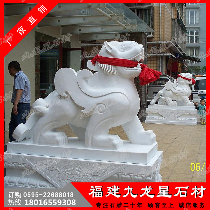 銀行門口石貔貅裝飾物從古到今都受到人們的親睞,不管是佩戴的,還是擺放的,貔貅的吉祥寓意可以為人們帶來財運、吉祥、好運和健康等。在古時候,人們常常將貔貅當(dāng)做是保護人們的神獸,貔貅它的特點就是有嘴而沒有肛門,就是可以吞萬物而不泄, 銀行門口石貔貅的特點就是只進不出的意思,不但可以為人們招財進寶,還有著保護主人吉祥的功能。