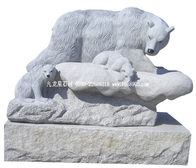 石雕母子熊采用整塊G614花崗巖雕刻(不含底座)而成,長1.4米,高1.2米。雕刻主題為“石雕母子熊”。